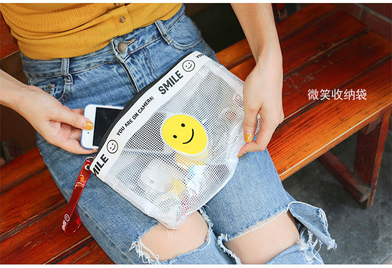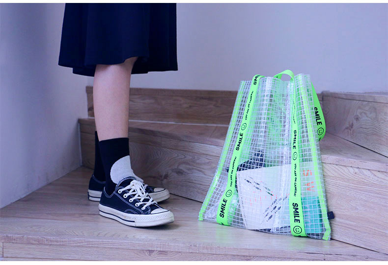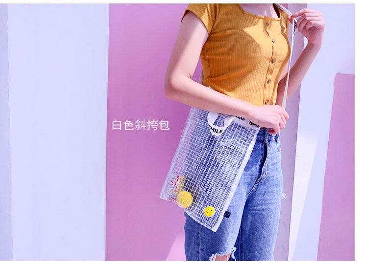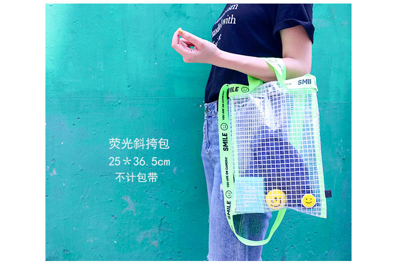 原品PVC网格包袋-收纳微笑/撇嘴-单肩白/荧光-斜挎白/荧光