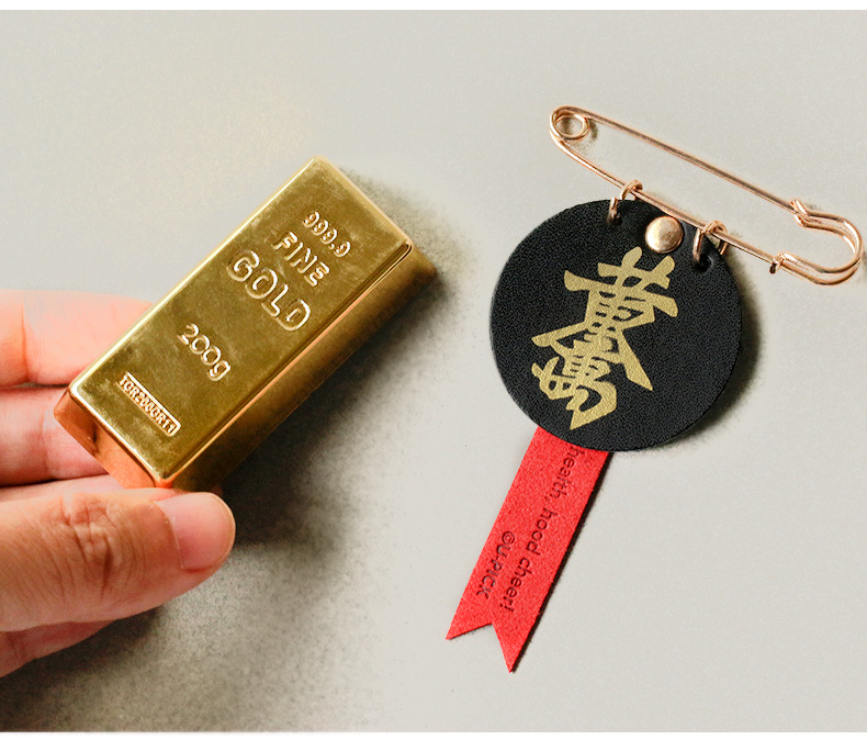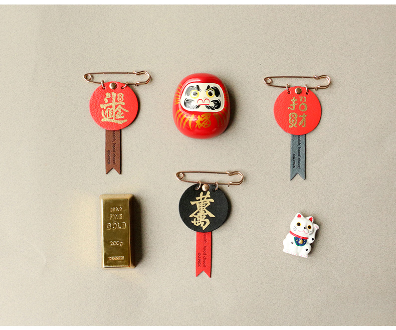 原品真皮别针扣-日进斗金/黄金万两/招财进宝/星球