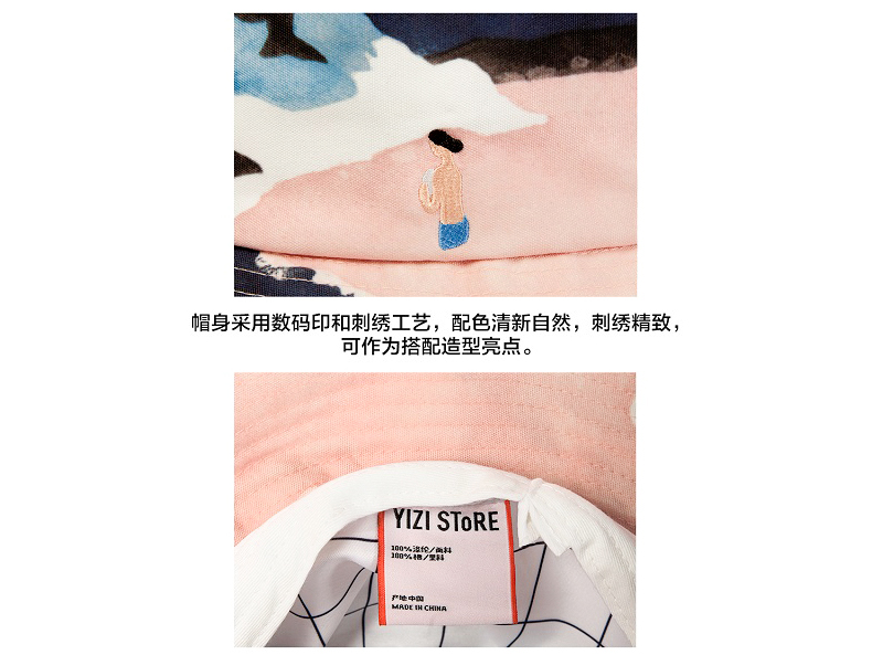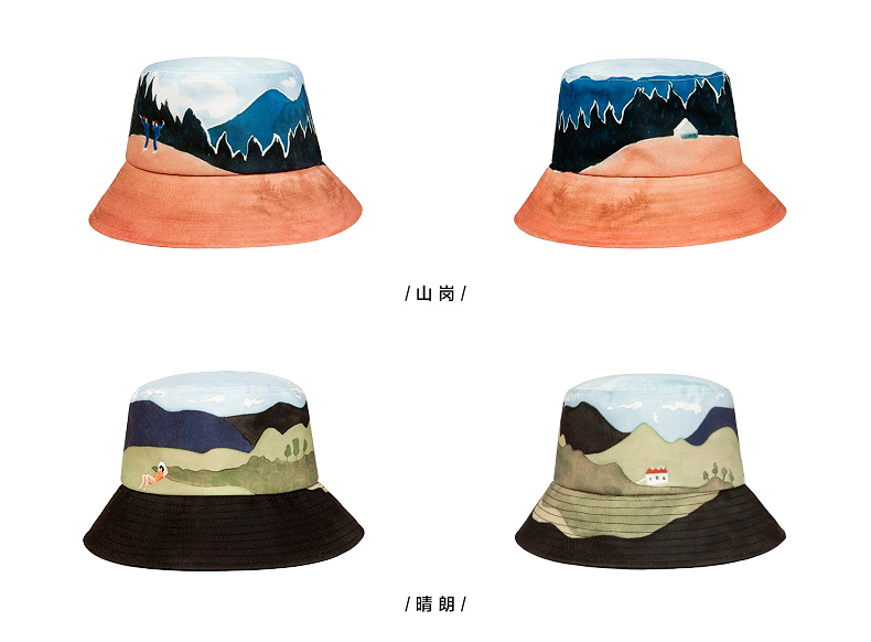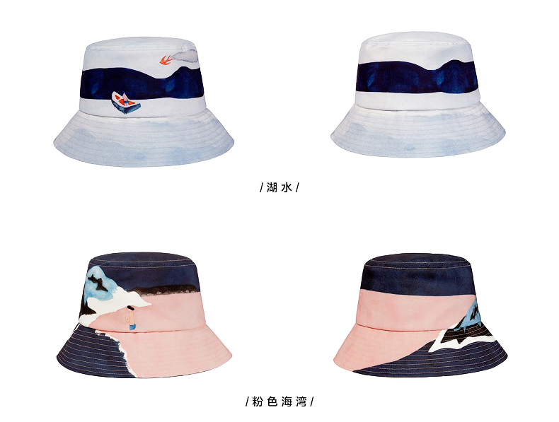 YIZI风景2渔夫帽-粉色海湾/湖水/山岗/晴朗