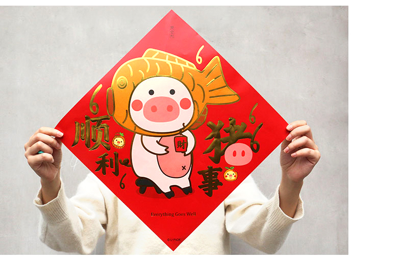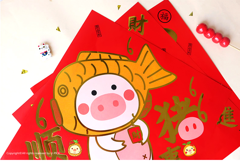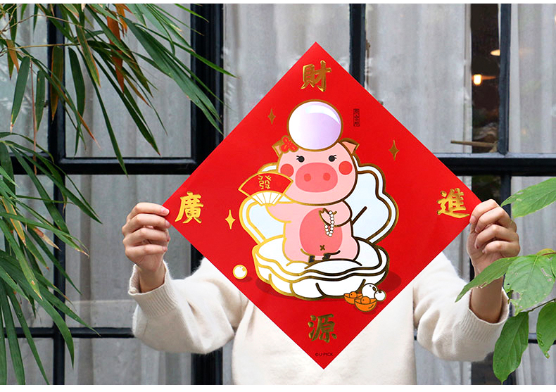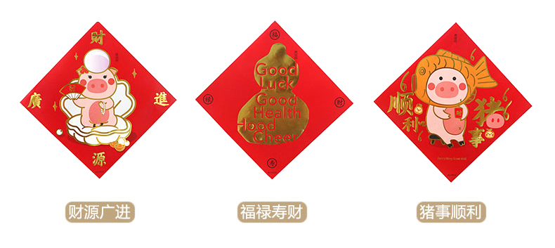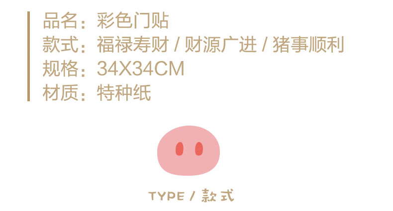原品彩色方形门贴-福禄寿财/财源广进/猪事顺利