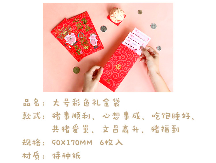 原品大号彩色礼金袋(六枚入)