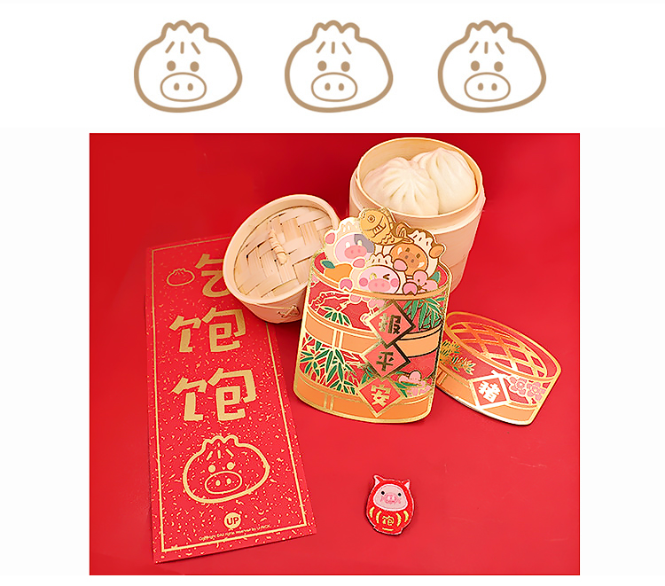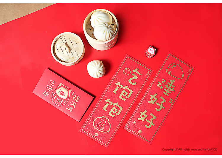 原品印金创意趣味文字小对联-吃饱饱/福满满