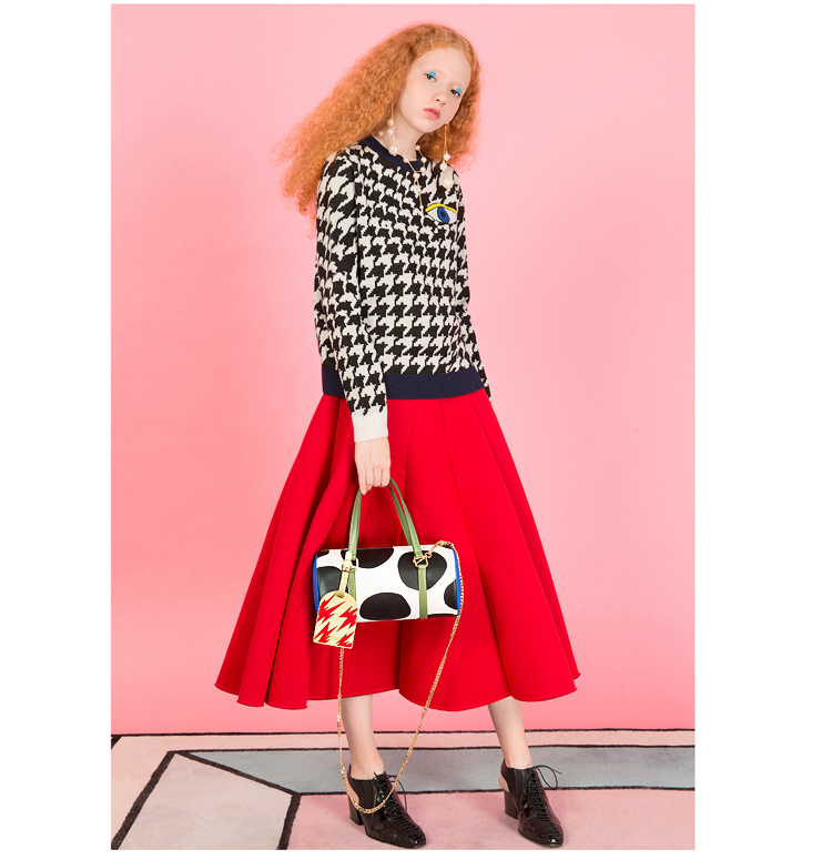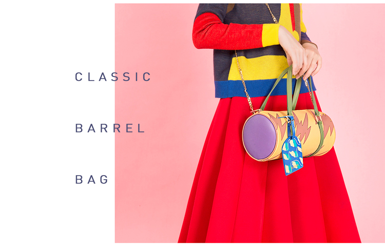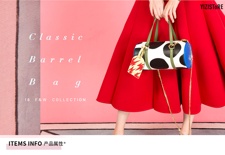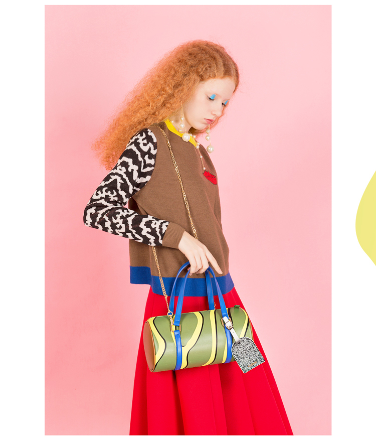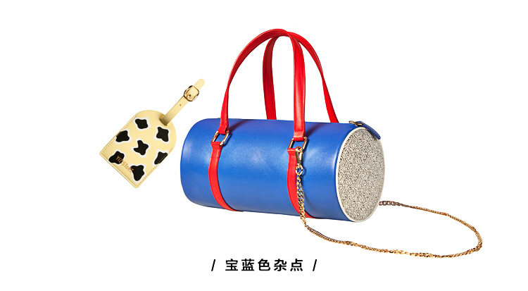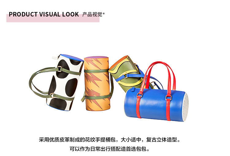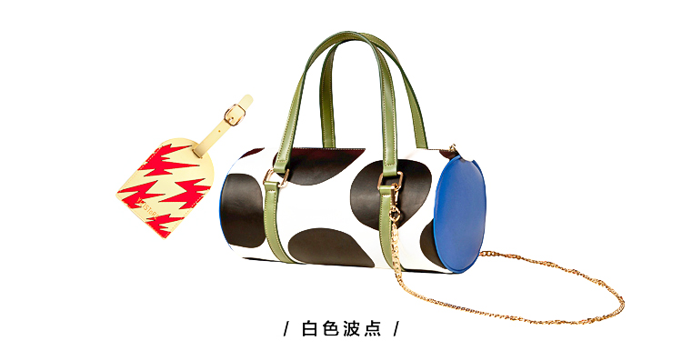 YIZI花纹斜挎单肩手提桶包-宝蓝杂点/绿色波纹/黄色闪电/白色波点