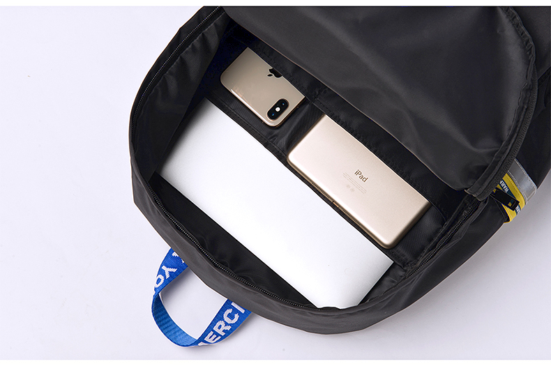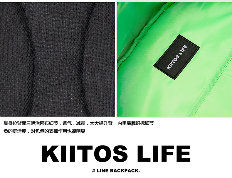 KIITOS警戒线主题尼龙双肩包-黑色/紫色