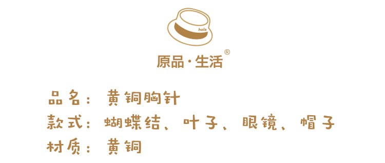 原品黄铜胸针-蝴蝶结/叶子/眼镜/帽子