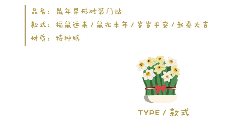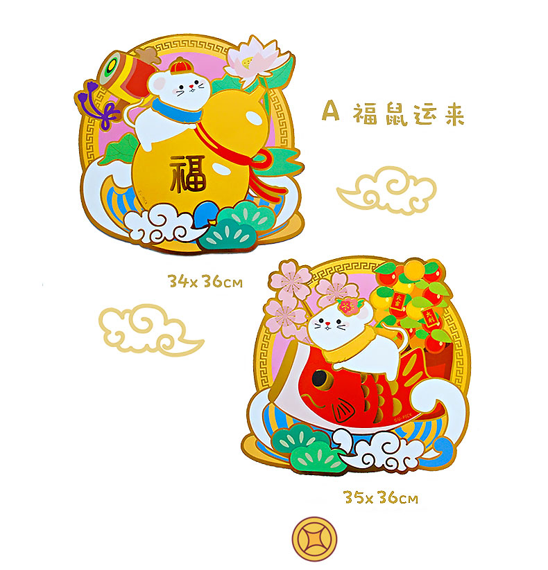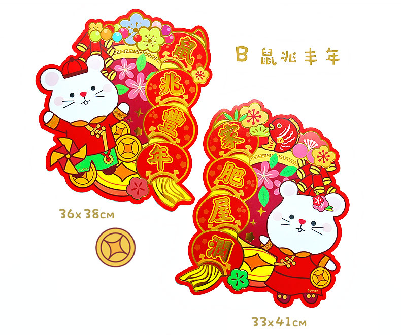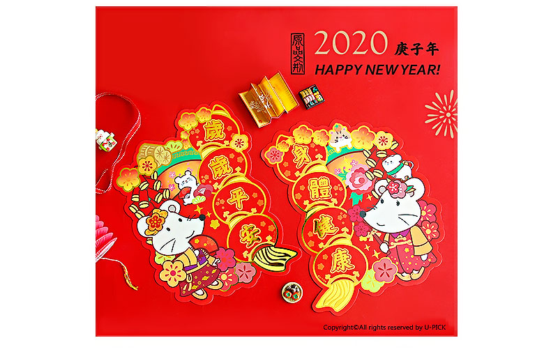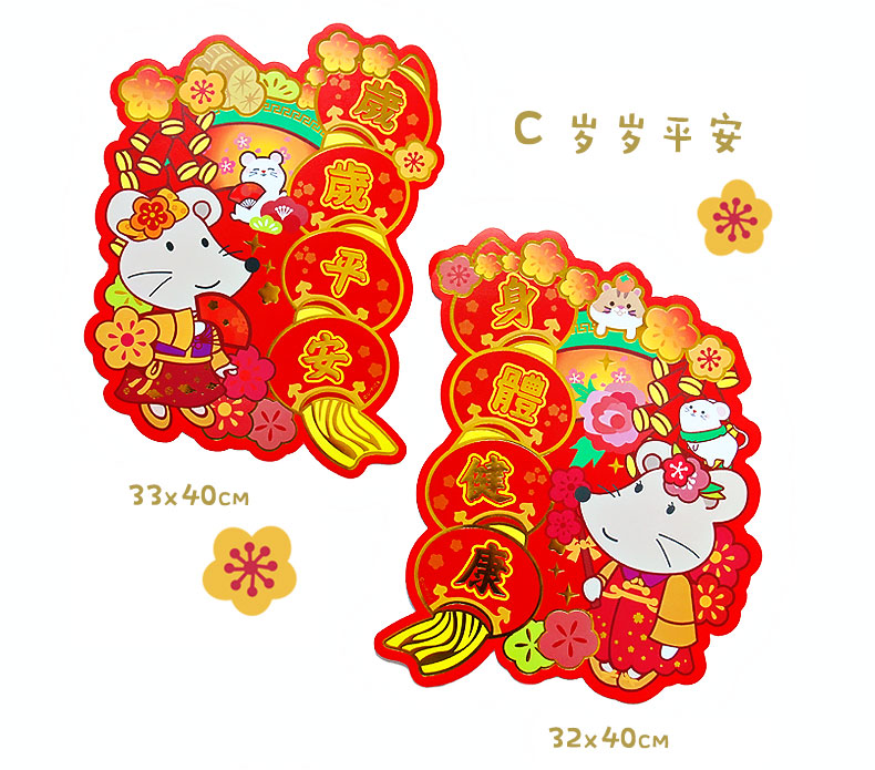 原品异形对装鼠年门贴-福鼠运来/鼠兆丰年/岁岁平安/新春大吉