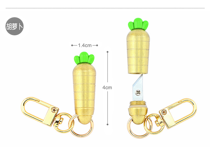 八门虫社迷你小刀黄铜钥匙扣-胡萝卜/菠萝/榛果