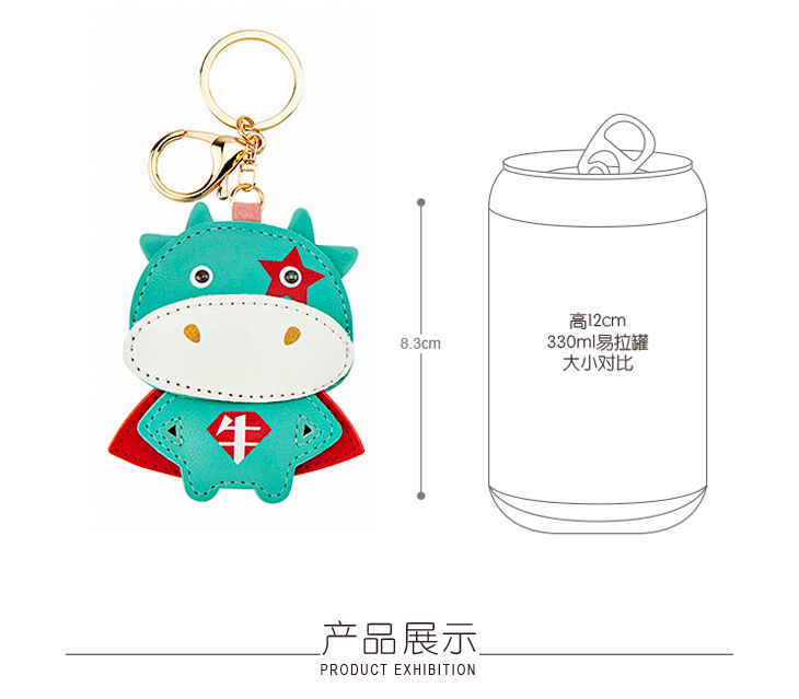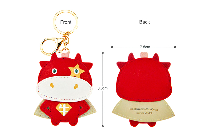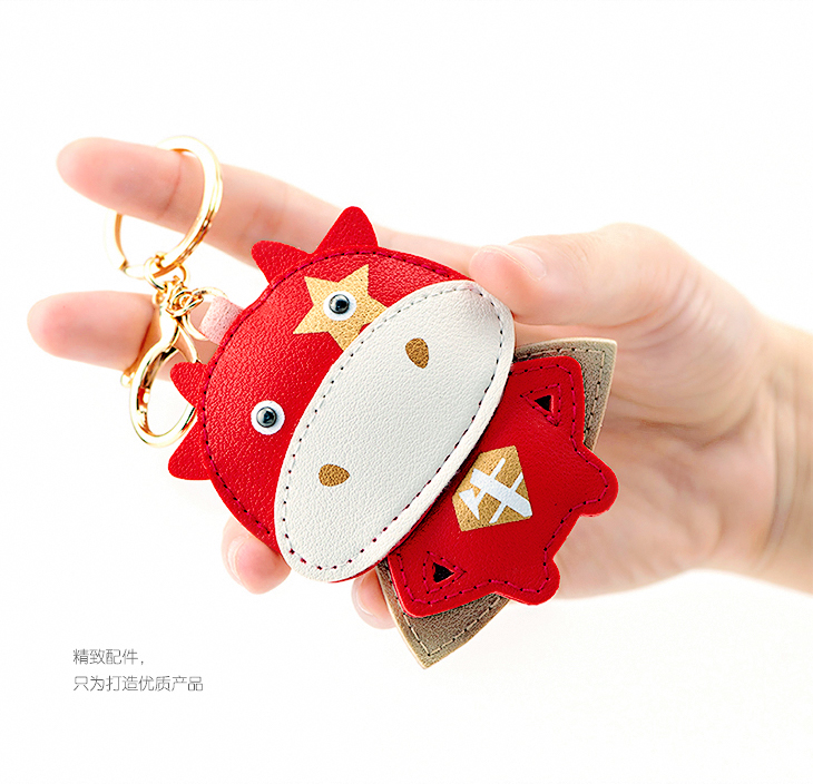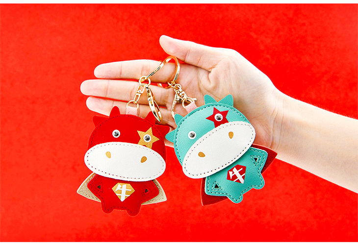 八门虫社牛年吉祥语PU钥匙扣包挂-牛/平安/招财/好运/喜乐