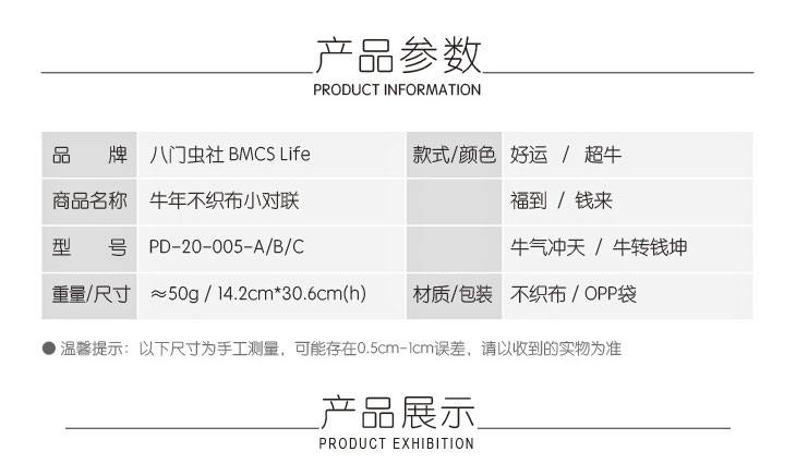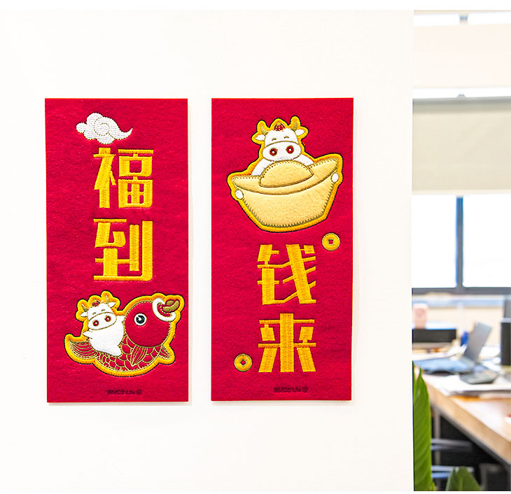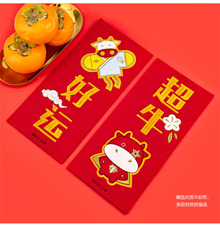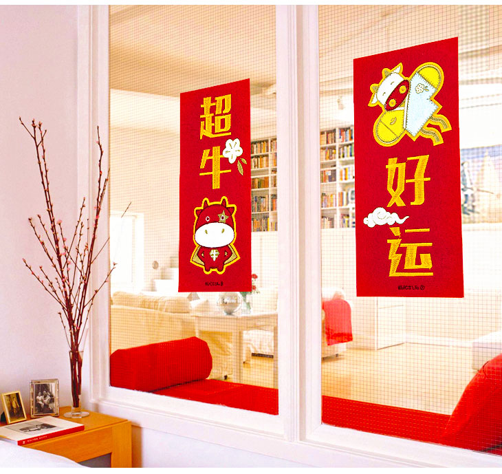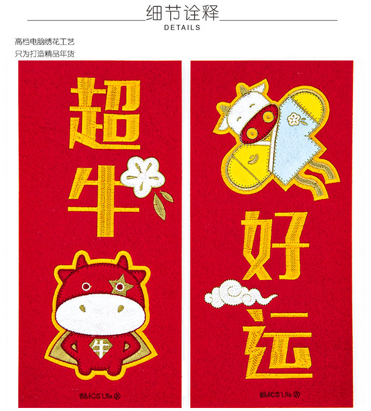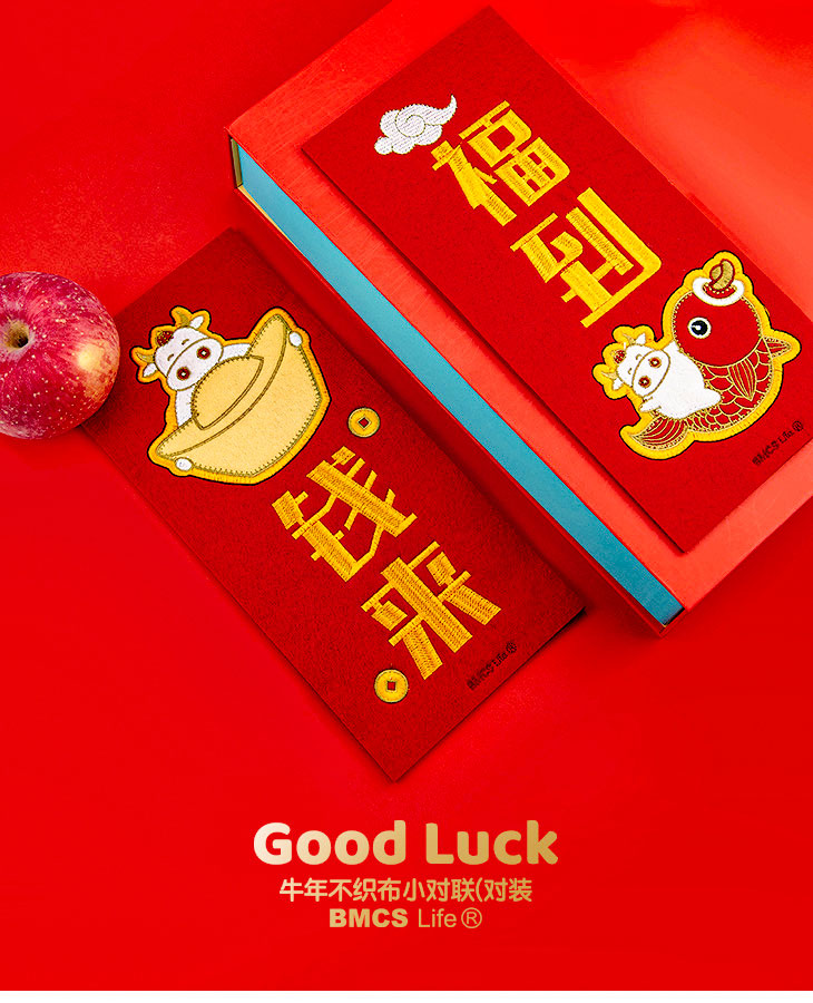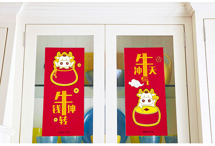 八门虫社牛年不织布小对联-福到&钱来/好运&超牛/牛气冲天&牛转钱坤