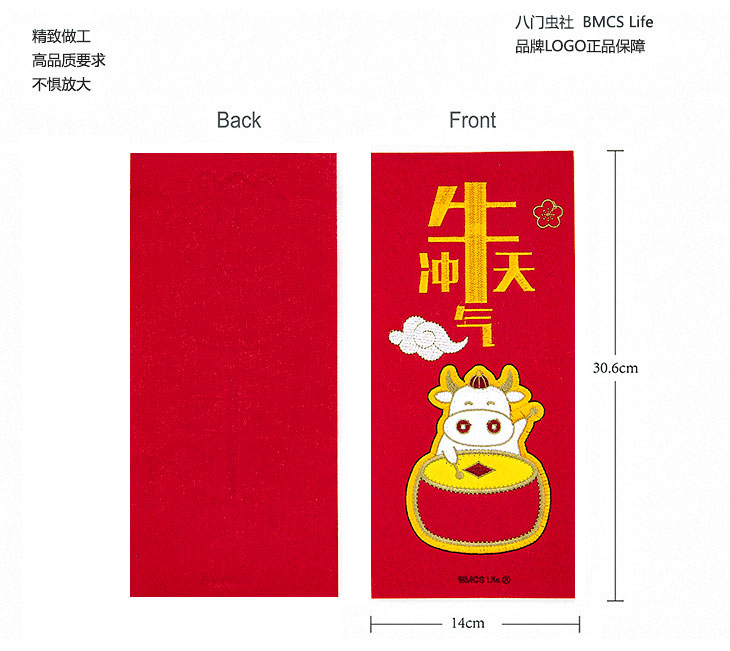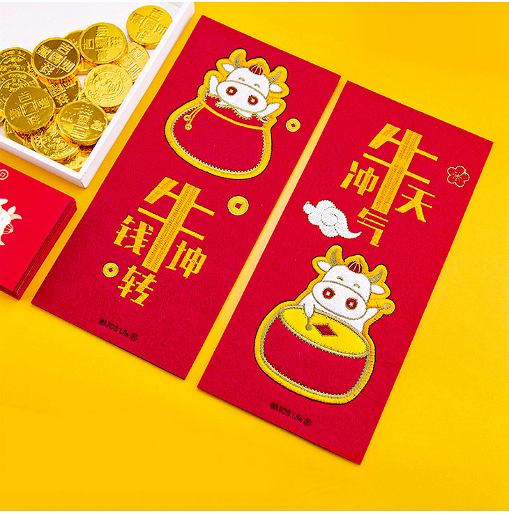 八门虫社牛年红包袋(6枚入)-超牛/好运/牛转钱坤/牛气冲天