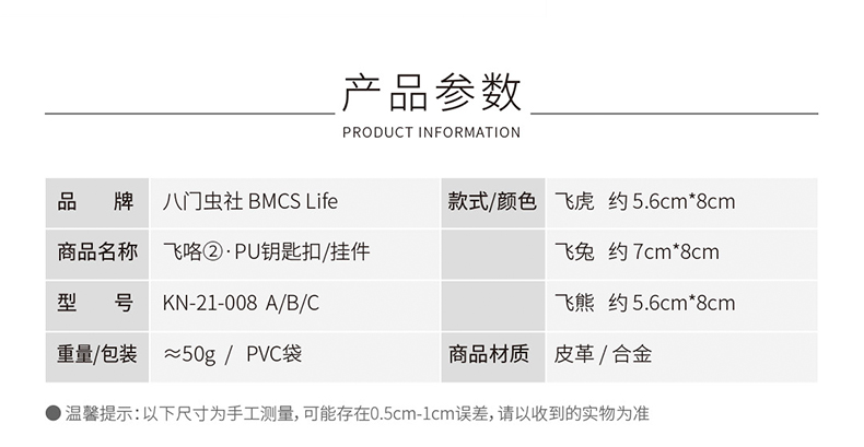 八门虫社飞咯皮革钥匙扣挂件-飞虎/飞熊/飞兔