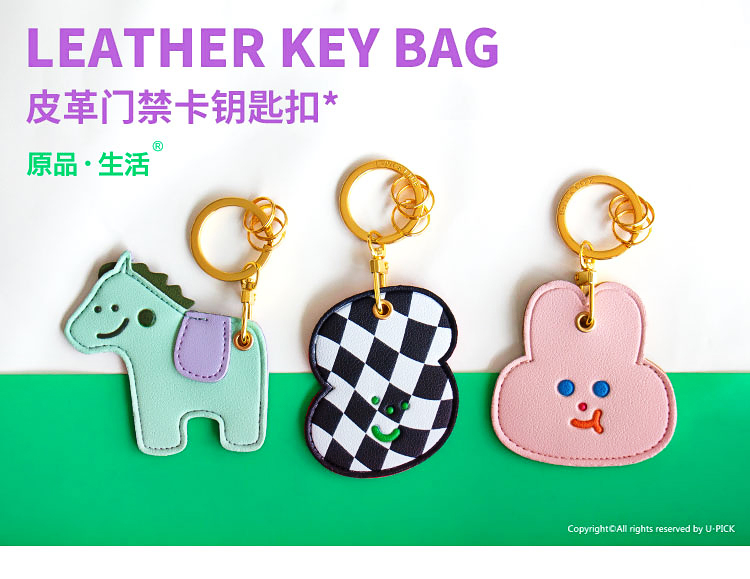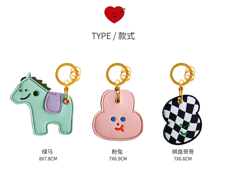 原品皮革门禁卡套钥匙扣-绿马/粉兔/棋盘哥哥