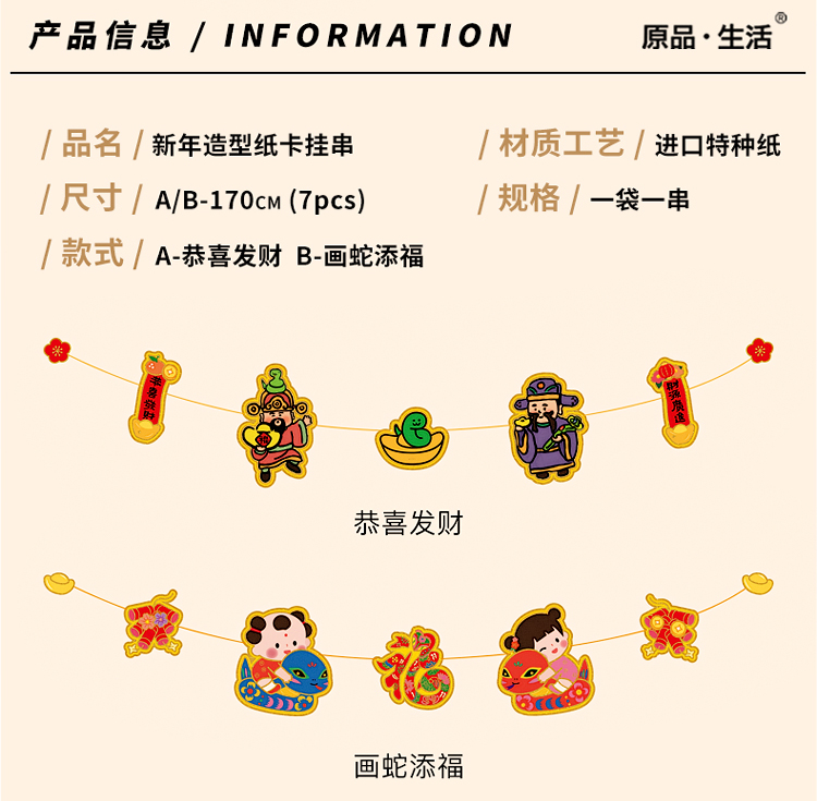 原品蛇年造型纸卡挂串-恭喜发财/画蛇添福