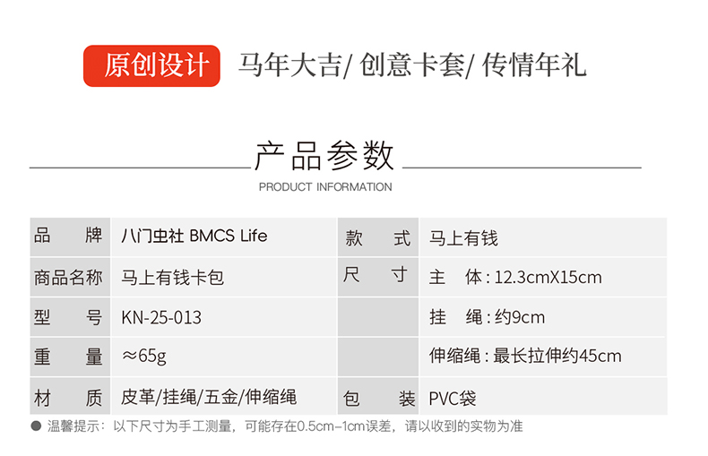 八门虫社2026马年马上有钱拉伸卡包卡套挂件钥匙扣